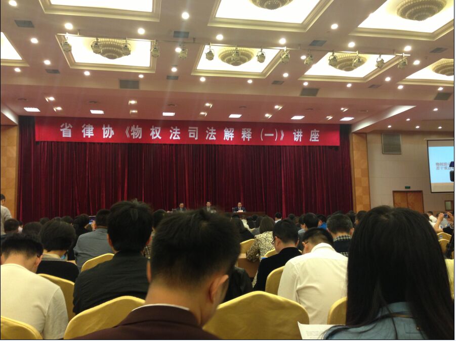 2016年5月8日,我所吴涛、范小群、周沈锋、钟立成、潘玲源等律师参加了由浙江省律师协会举办的《最高人民法院关于适用<中华人民共和国物权法>若干问题的解释(一)》学习讲座。