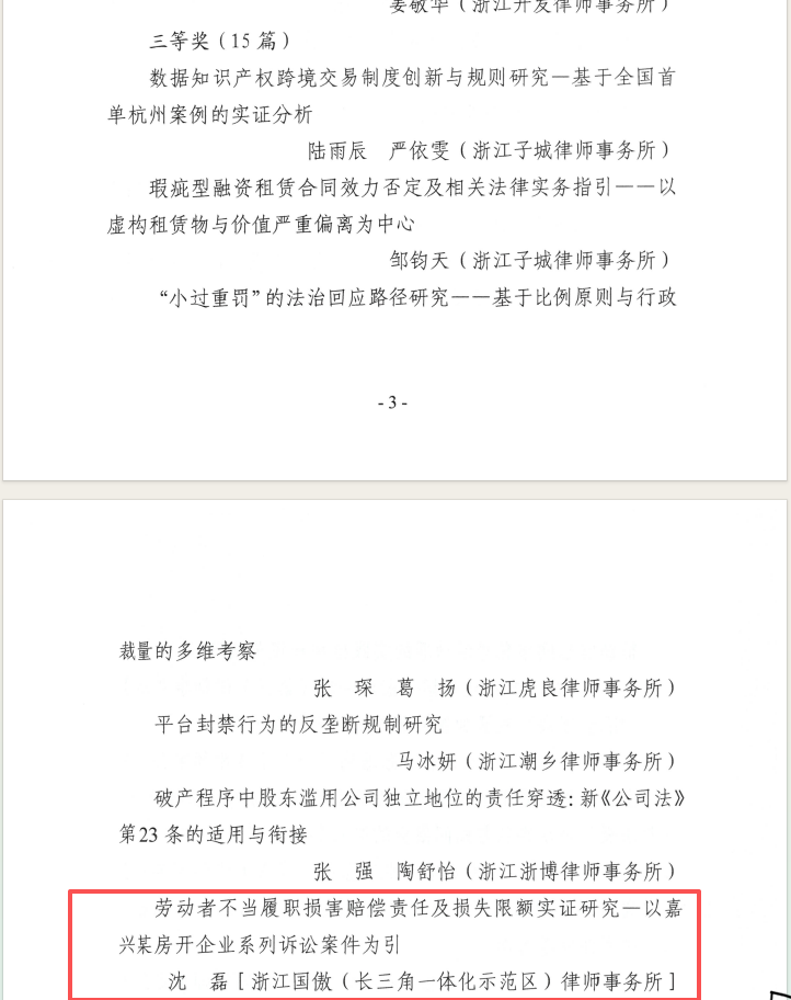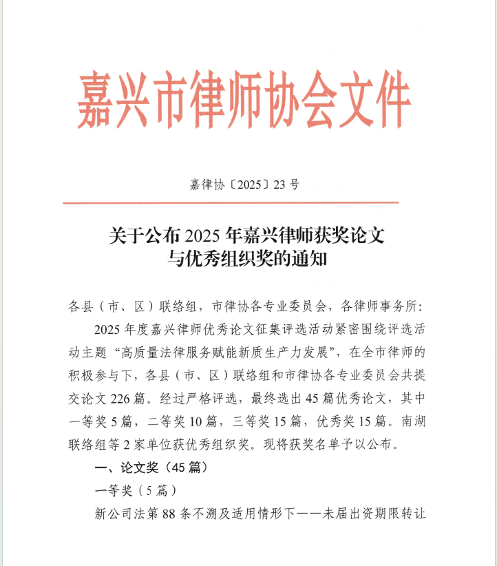 国傲所始终注重理论与实践向结合,本次获奖论文聚焦新公司法适用、金融担保实务、劳动用工合规及人工智能法律规制等前沿领域,体现了我所律师对法律实务的持续关注和思考体现,具备敏锐的行业洞察力和解决复杂法律问题的专业能力,充分展现了国傲所在法律服务理论研究与实务创新方面的卓越实力。