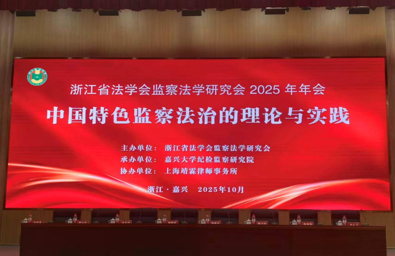 2025年10月25日,由浙江省法学会监察法学研究会主办,嘉兴大学纪检监察研究院承办、上海靖霖律师事务所协办的浙江省法学会监察法学研究会2025年学术年会在嘉兴召开。