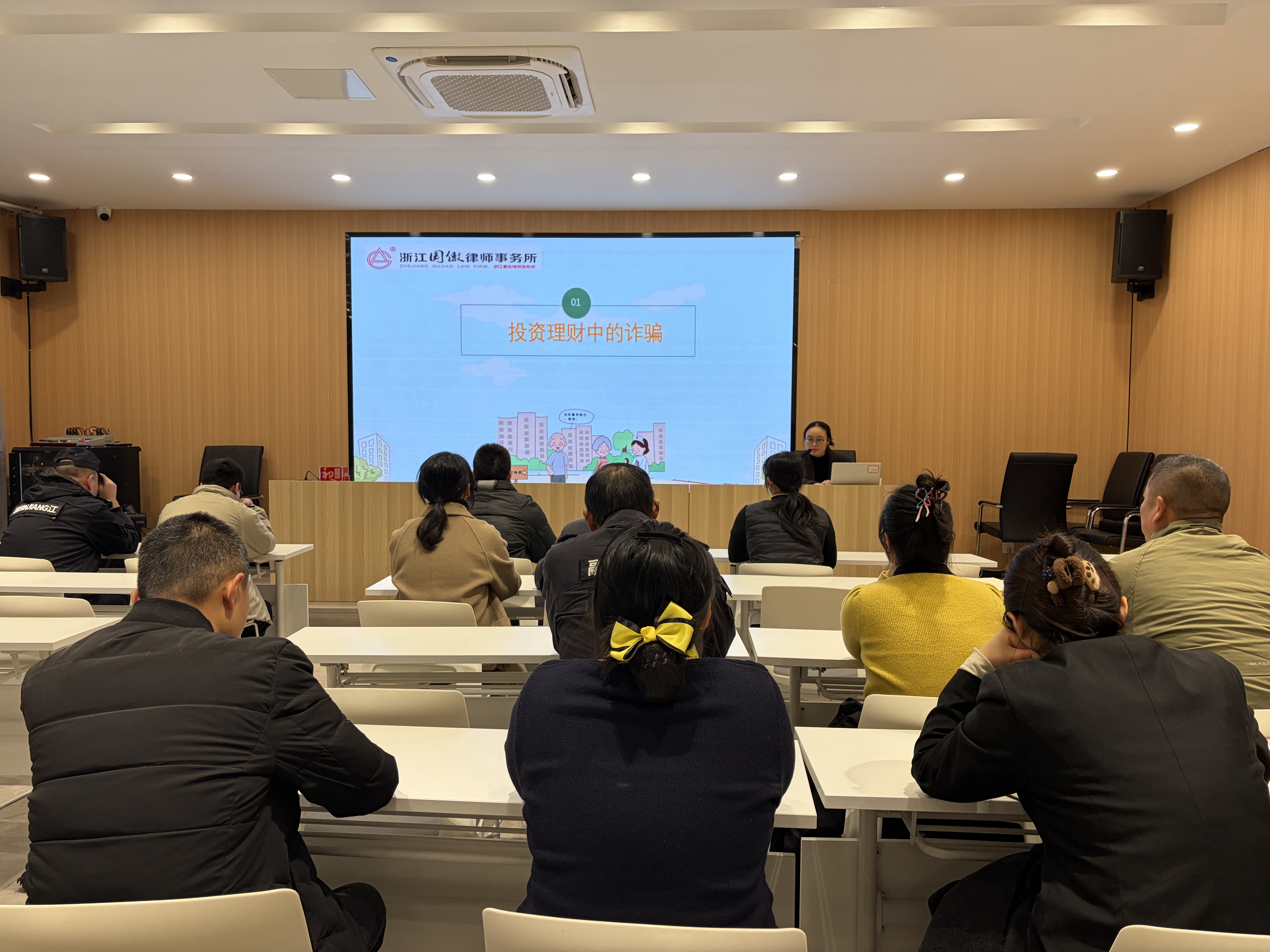 为深入推进宪法宣传月活动,切实提升社区居民的法律意识和风险防范能力,12月12日下午,我所杨伊莉律师应我所党建共建单位嘉南社区邀请为社区居民作《生活中的法律小课堂》普法宣传讲座。讲座内容聚焦居民关注度极高的投资理财诈骗防范与婚姻家庭法律问题,以真实案例结合法律条文的形式,为现场居民送上了一堂干货满满的 "法律必修课",赢得了大家的一致好评。